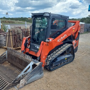 Skidsteer with tracks, enclosed cab. Kubota Model SVL75-3HC.